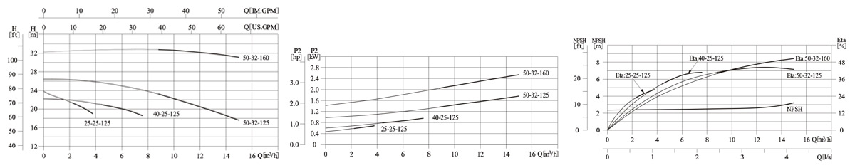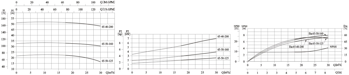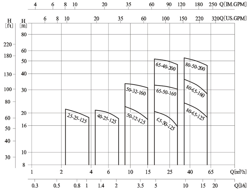 泵的使用參照加粗曲線的性能范圍,以防流量過大使電機過載。