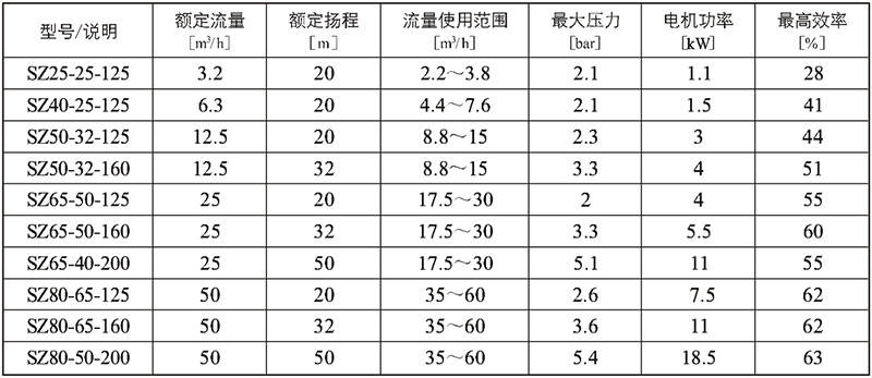 SZ系列泵為單個葉輪離心泵,其軸向為吸入口, 徑向為排出口。