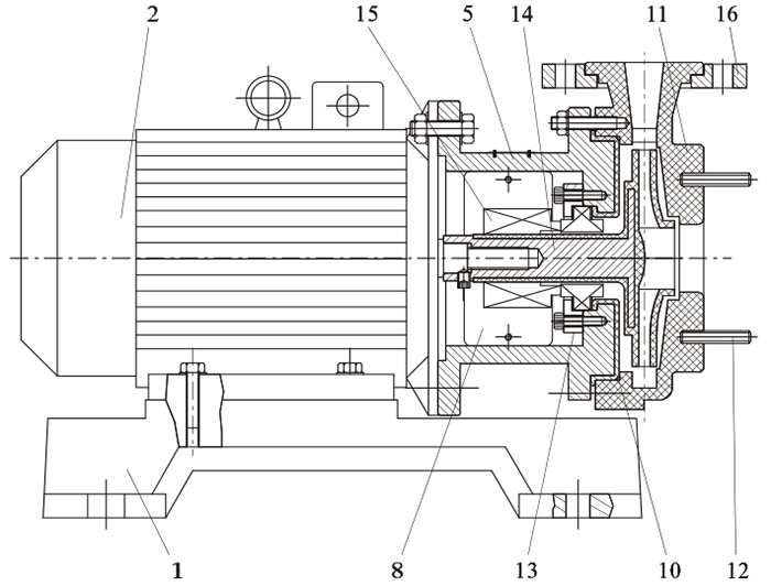 泵過流部件采用氟塑料(F26、F46),輔助件采用鑄造件(HT200)。