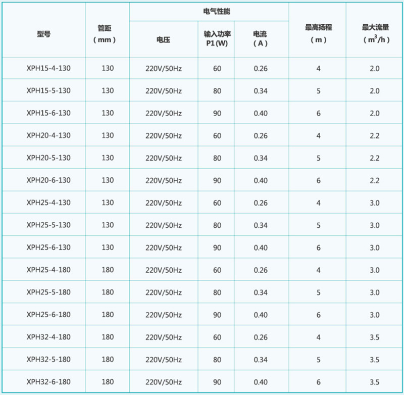 XPH定時(shí)定溫型屏蔽循環(huán)泵(以下簡(jiǎn)稱電泵),采用屏蔽電機(jī)、濕轉(zhuǎn)子技術(shù),并結(jié)合設(shè)計(jì)控制模塊開發(fā)的一款帶定 時(shí)定溫功能的循環(huán)泵,產(chǎn)品可實(shí)現(xiàn)全天設(shè)定10個(gè)時(shí)間段來 控制水泵的運(yùn)行,也可實(shí)現(xiàn)設(shè)定2-75度的溫度范圍來控制 水泵的運(yùn)行,也可實(shí)現(xiàn)溫控和時(shí)控同時(shí)控制。產(chǎn)品系列流 量范圍0-3.5m3/h ,揚(yáng)程范圍0-6m ,輸入功率0-90W ,應(yīng)用于冷熱水循環(huán)系統(tǒng)。