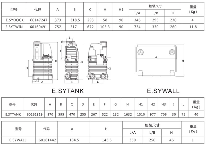 E.SYLINE組件是E.SYBOX的功能性組件,是產(chǎn)品的人性化擴(kuò)展。系列主要包含E.SYTANK(儲水罐),E.SYDOCK (底座), E.SYTWIN(雙底座),E.SYWALL(懸掛附件),提供了全新的安裝和使用體驗(yàn)。